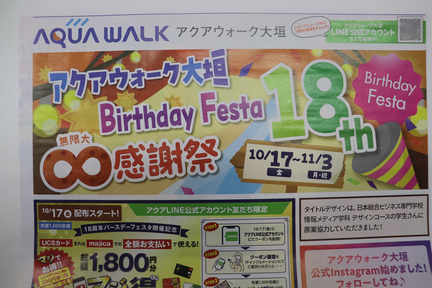 アクアウォーク大垣店の18周年記念チラシデザインに参加しました